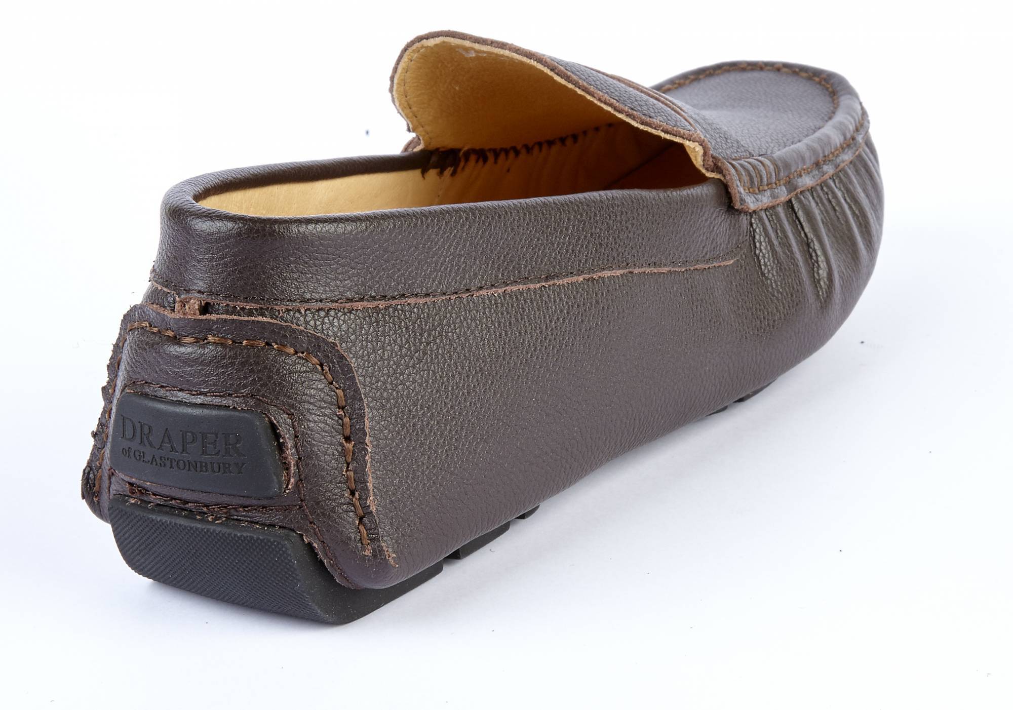 Our driving shoe for men in brown colour leather. It has a soft leather upper, leather lining throughout, and a rubber sole which comes higher at the back to prevent wear while driving. It is a regular G width fitting, but it is wider rather than narrow.