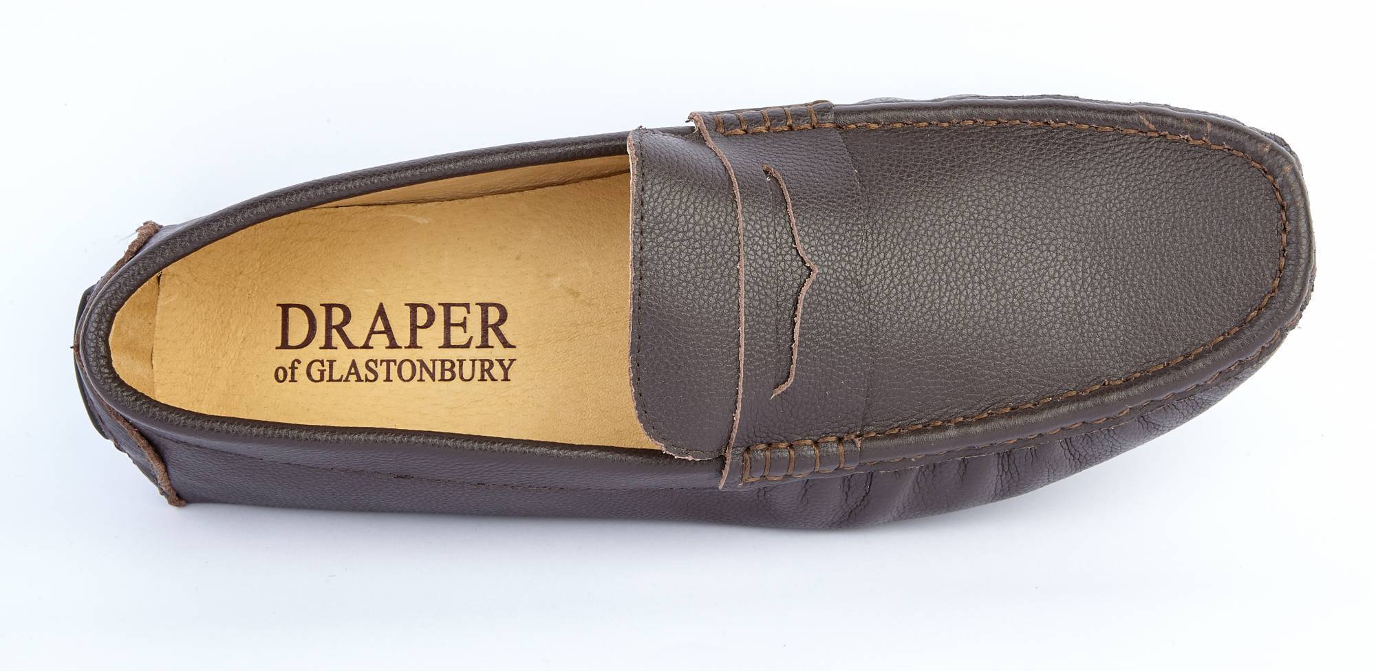 Our driving shoe for men in brown colour leather. It has a soft leather upper, leather lining throughout, and a rubber sole which comes higher at the back to prevent wear while driving. It is a regular G width fitting, but it is wider rather than narrow.