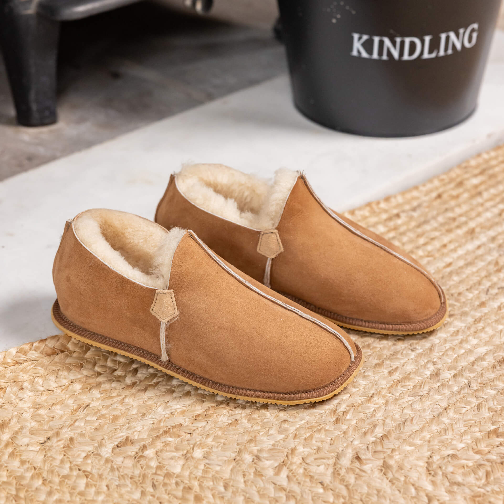 Our luxury shearling boot slipper. Handcrafted with a double faced shearling upper, real shearling lining and a flexible rubber sole. Made in England.