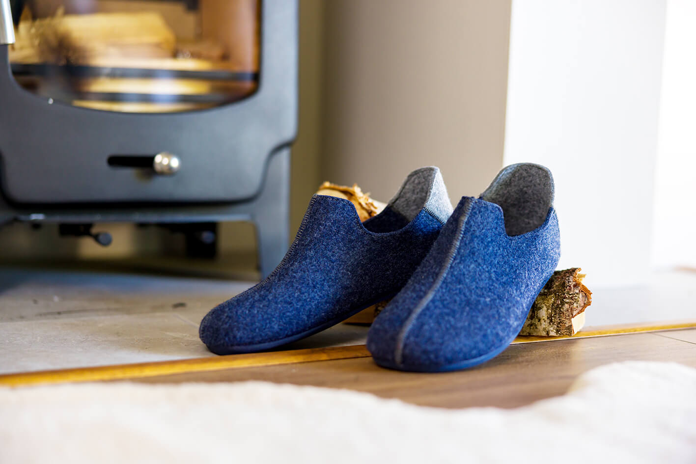 Our environmentally friendly felt slipper boot for men. The felt upper is made from 100% recycled materials, 20% of which is plastic collected from the sea (PET). It has a very flexible rubber sole. Designed in the United Kingdom, made in Spain.