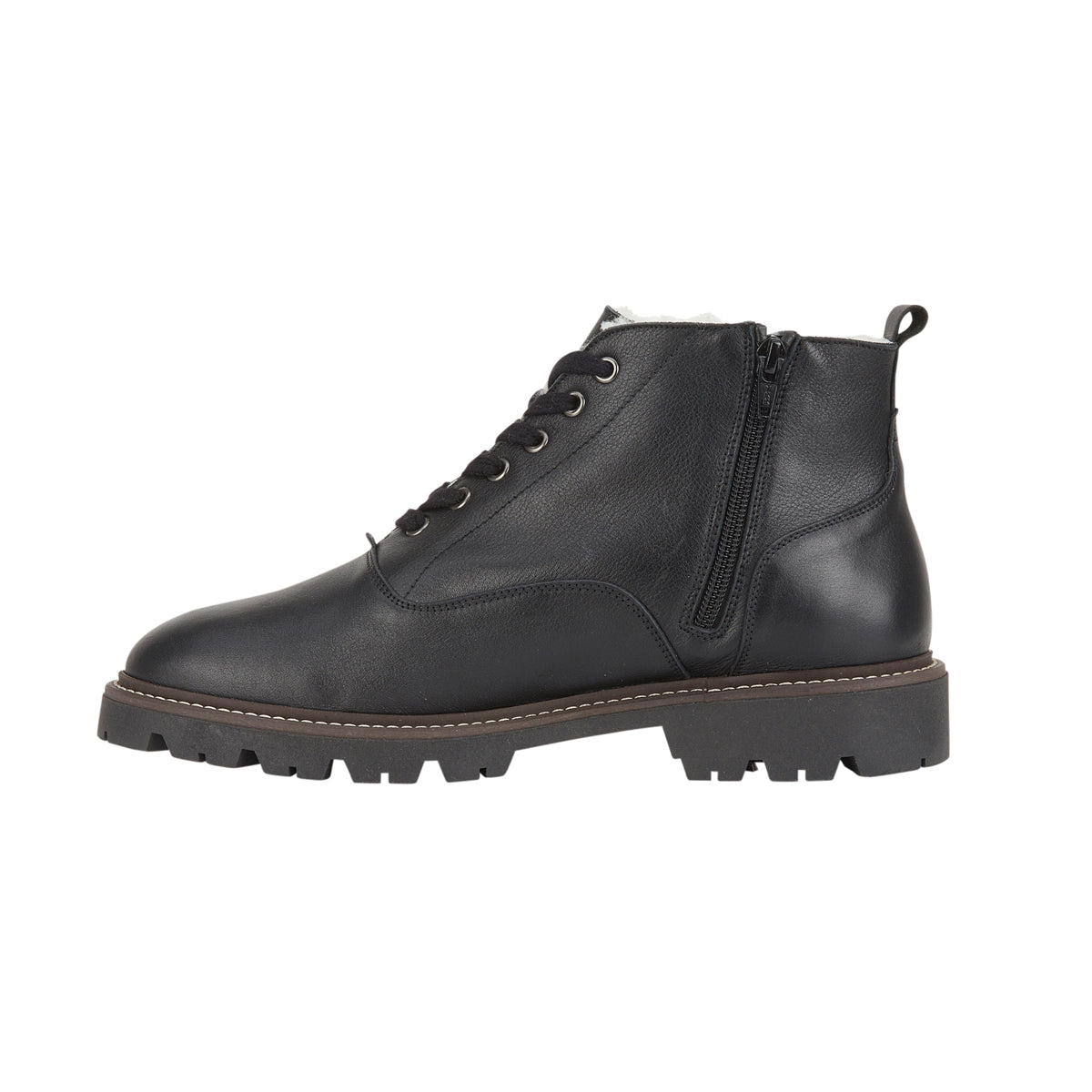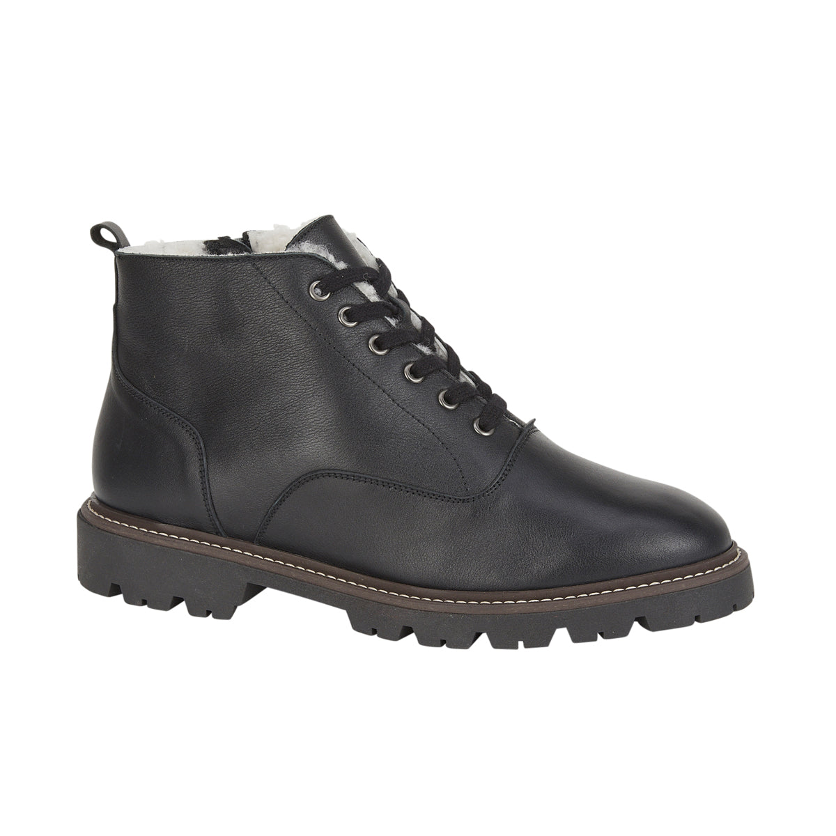 Our traditional leather shearling boot. Made with a leather upper, shearling lining throughout and durable non slip rubber sole. Laces as well as a side zip for easy fitting.