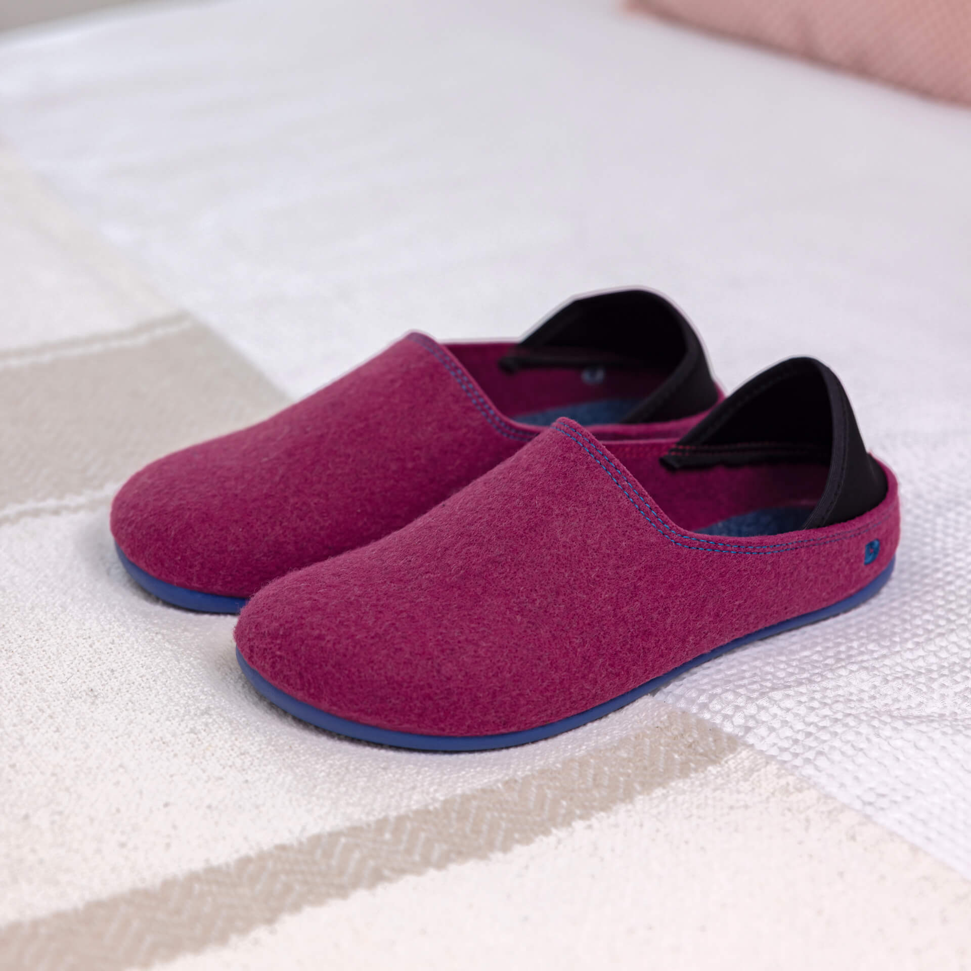 Our environmentally friendly felt slipper for women with an elasticated back for the perfect fitting. The felt upper is made from 100% recycled materials, 20% of which is plastic collected from the sea (PET). It has an extremely flexible sole and is very lightweight for the perfect year round wear. Designed in the United Kingdom, made in Spain.
