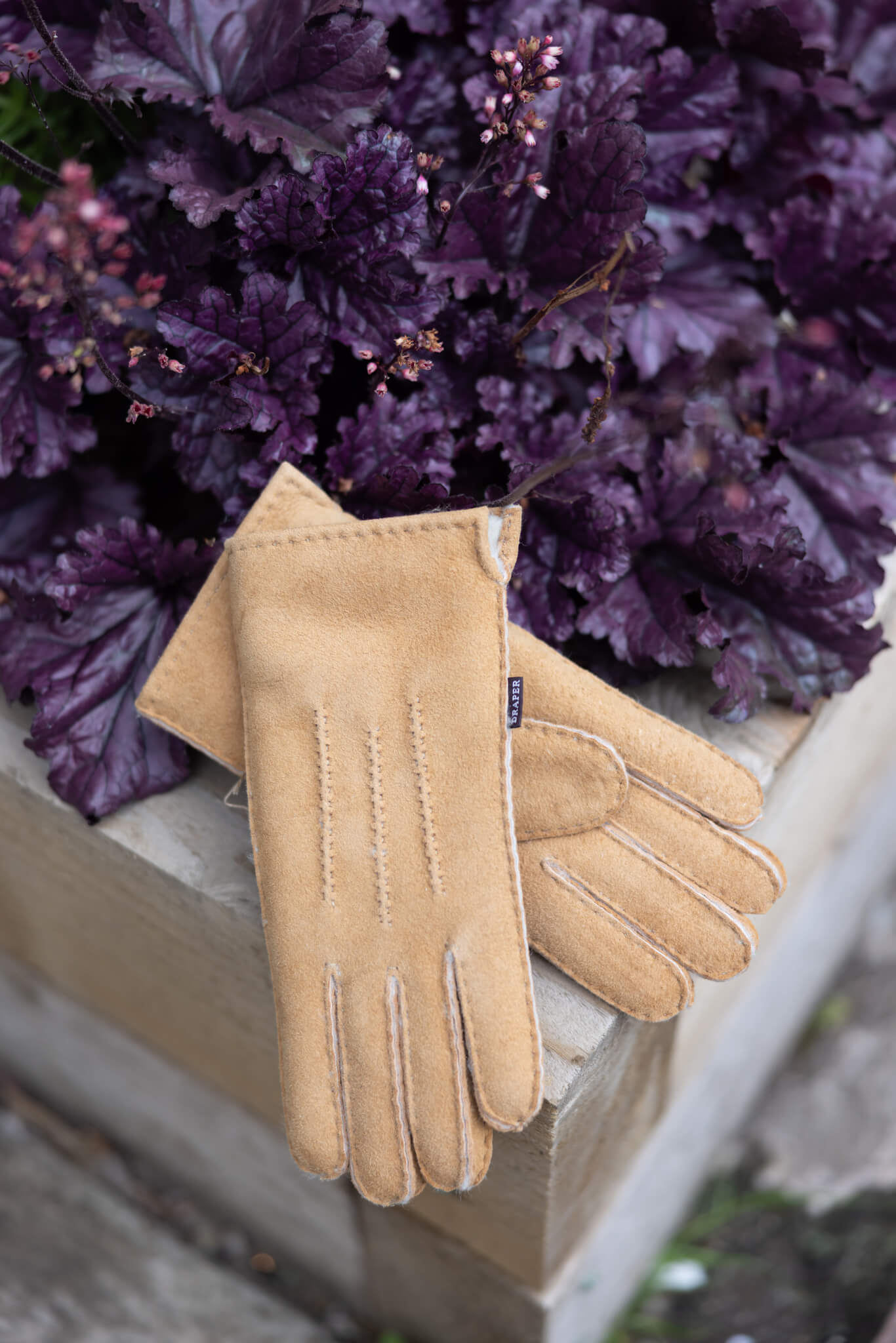 These are our tan coloured womens shearling gloves. They are perfect for winter days and nights, and can be used for city, town and country occasions as they are versatile gloves that look great and are practical too. There is nothing warmer than 100% luxuriously soft lambskin gloves, hand sewn the traditional way since 1937. The size can be measured by the circumference around your knuckles in inches.