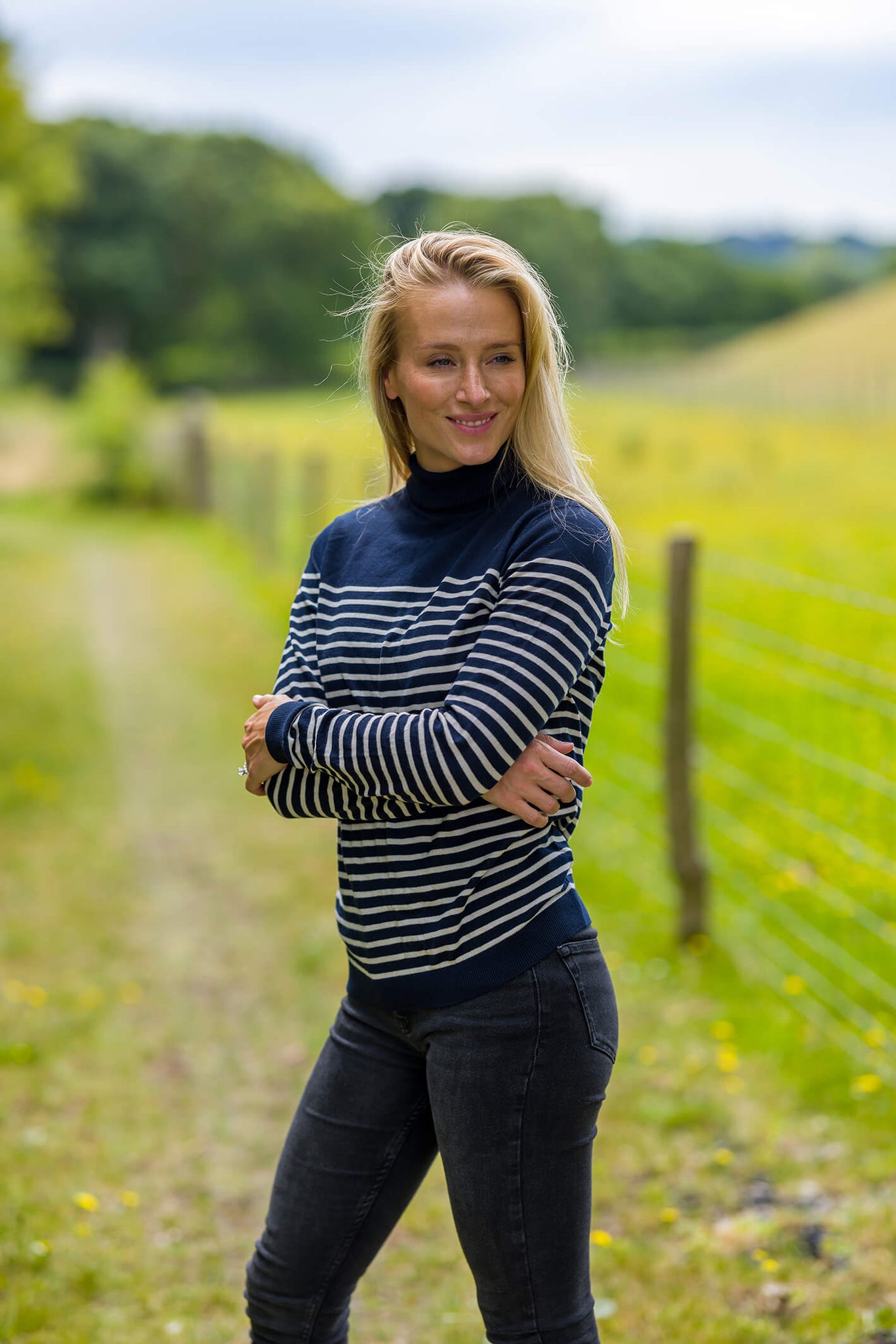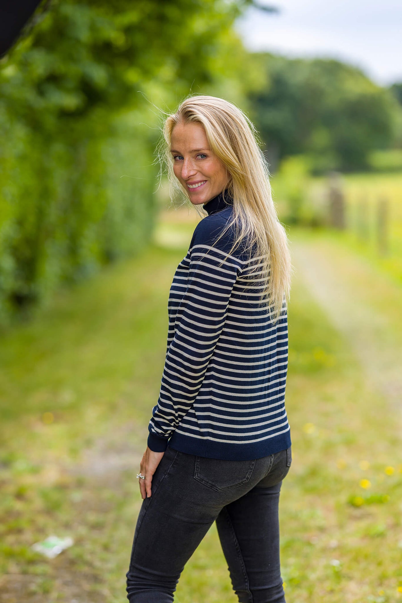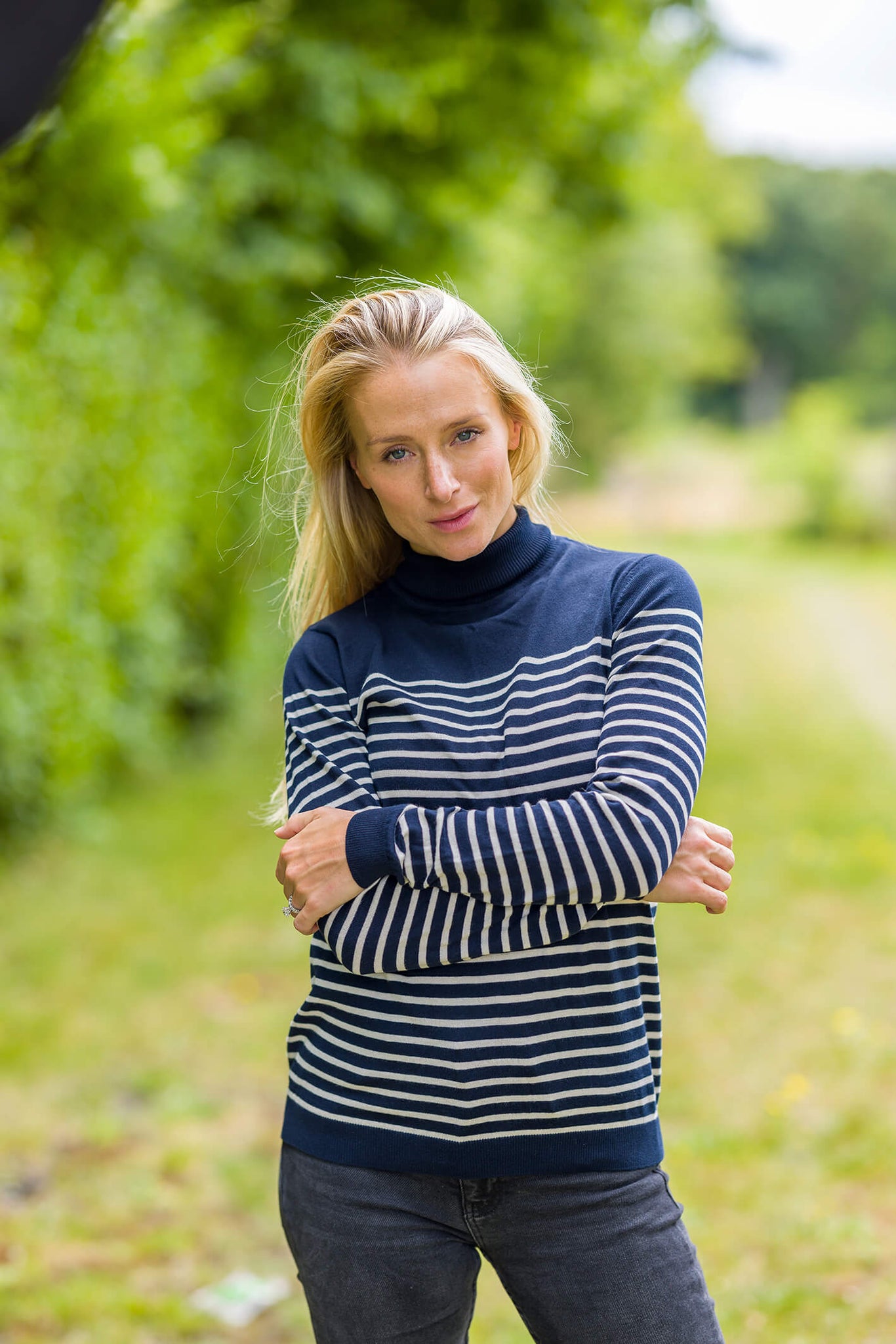 Our navy stripe cotton top for women. Crafted from pure 100% cotton, this is the perfect base layer for any outfit.