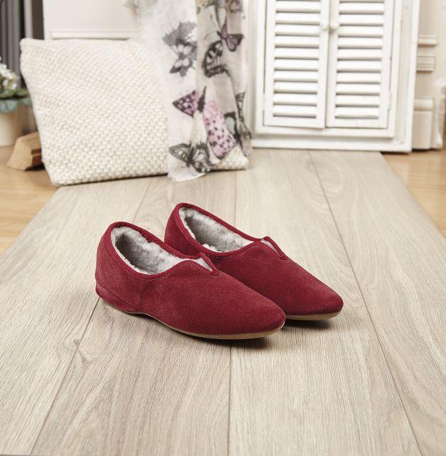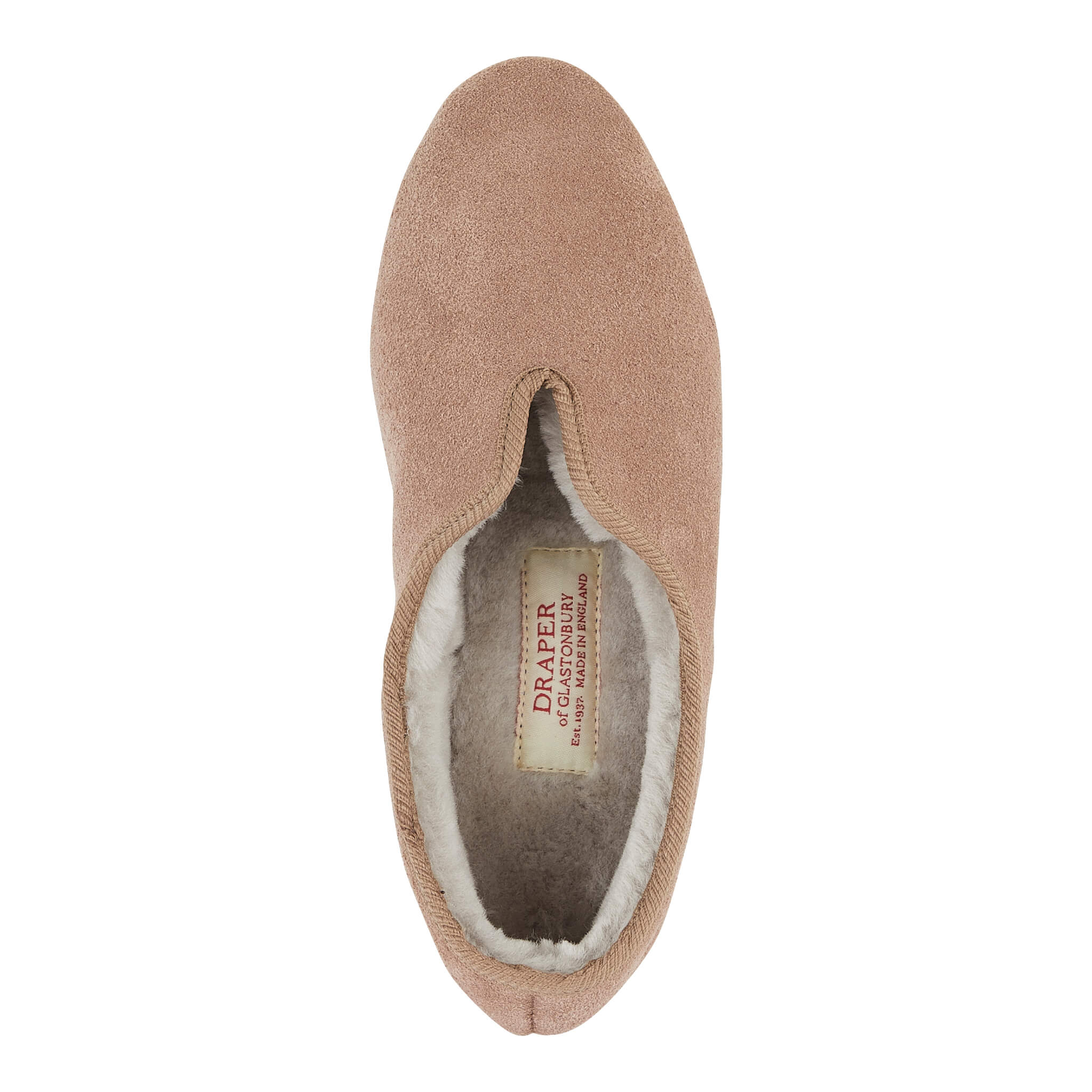 Our ladies scalloped front shearling slippers. Made with a suede upper from a Scottish tannery, our signature British shearling lining, and a suede sole. Made in England.