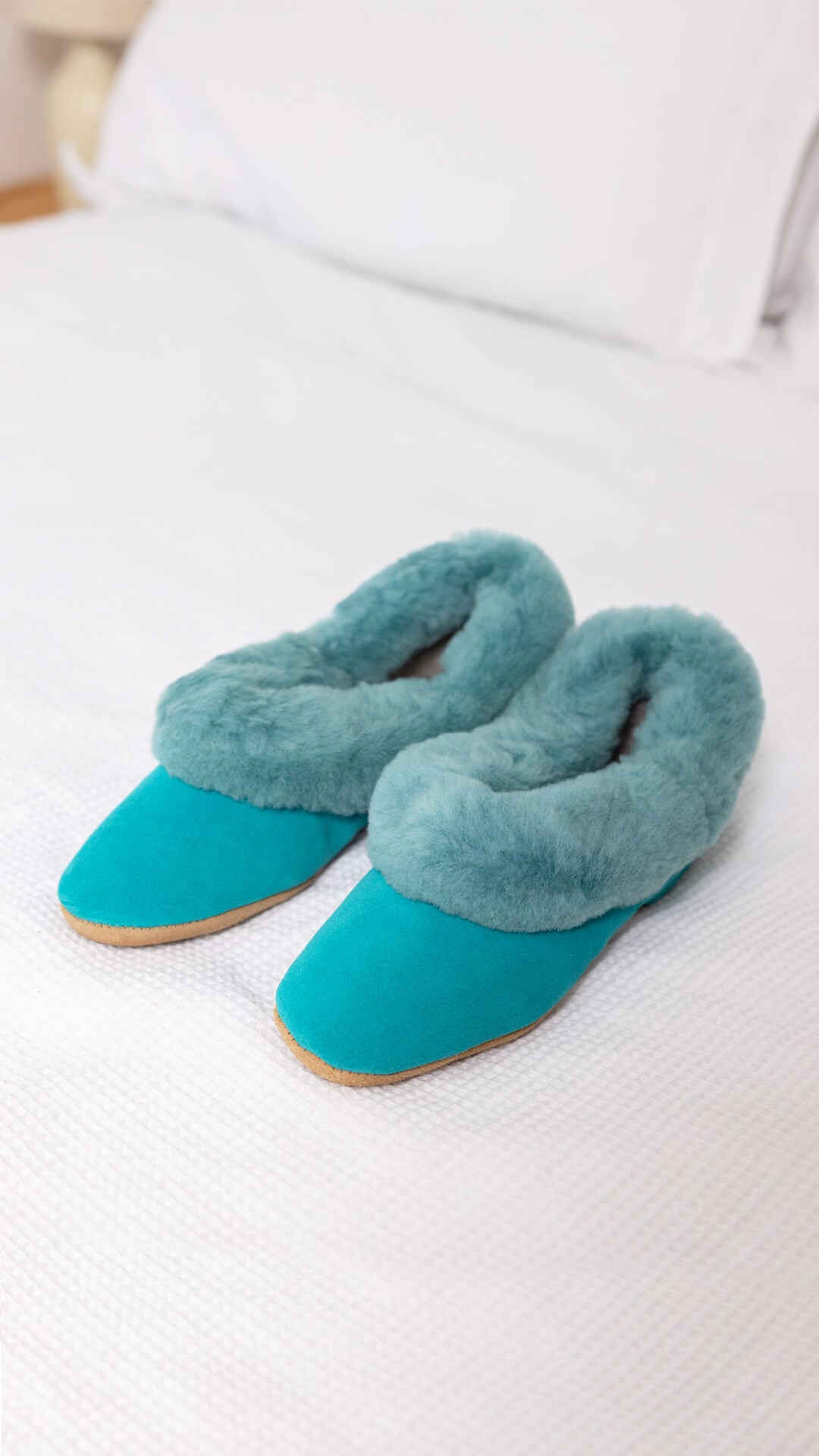 We hope that you find our real shearling and leather slippers absolutely perfect. They are each individually handmade, and take up to four weeks to be finished. (Although they are held in stock and ready to send to you as soon as you order). In order to care for the slipper, the suede must be kept dry, do not put into water. If they do get wet, let them dry naturally. The suede nap can be buffed up with a stiff brush. You can clean leathers with a damp cloth and mild detergent, no bleach, and leave them to dry naturally. The wool can be wiped with a damp cloth also, as well as being combed to renew appearance.