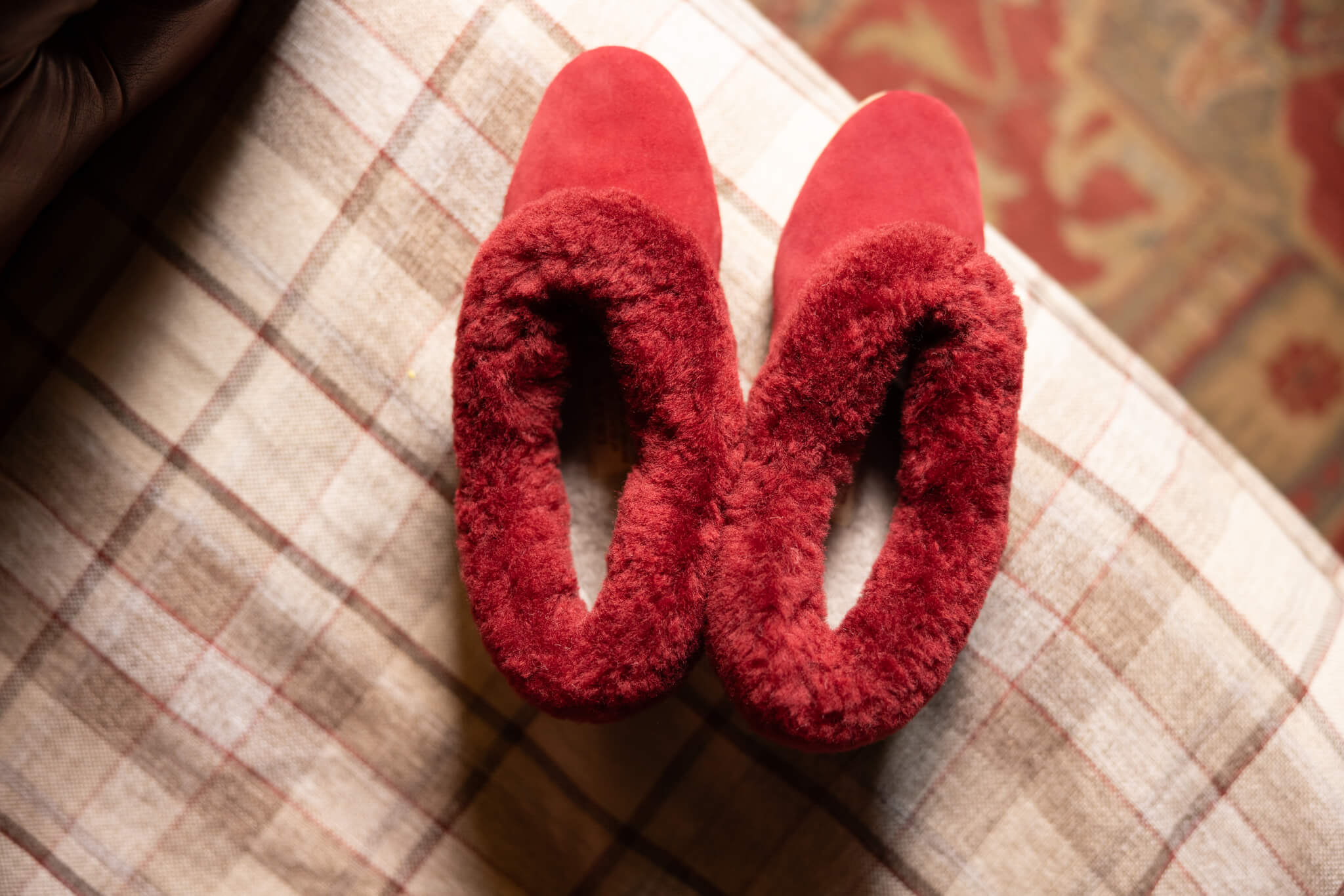 Jane is our most popular women's shearling slipper. Made with a shearling collar, suede upper, our signature British shearling lining and suede sole for flexibility and comfort. Made in England.