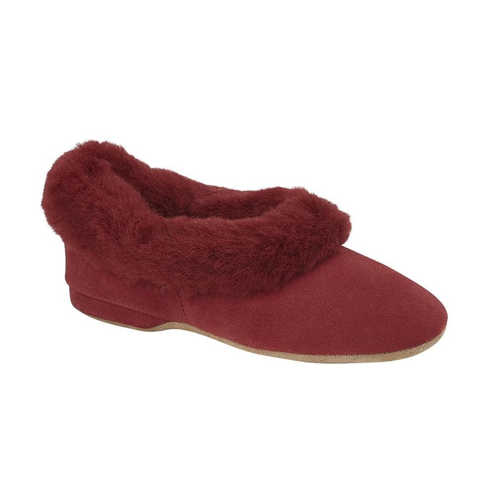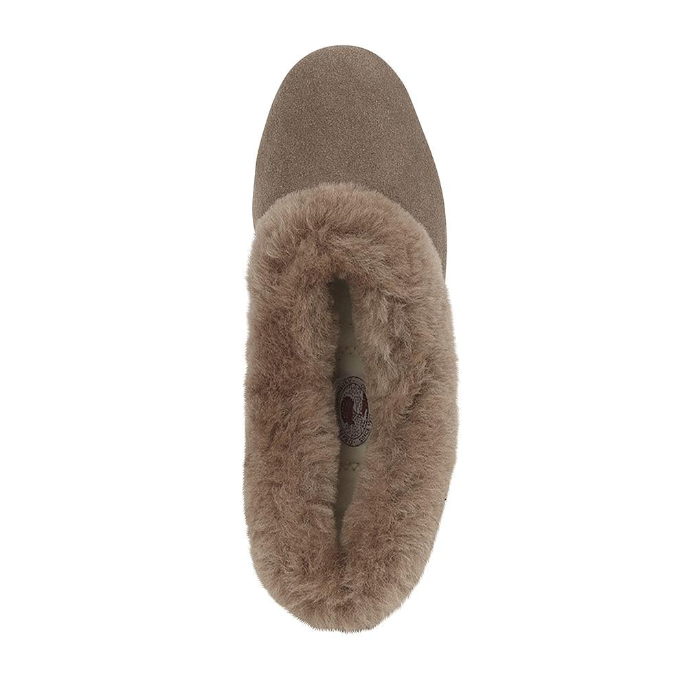 Janette is a classic womens lambswool lined slipper. It has a real shearling collar, suede upper, lambswool lining a suede sole. Made in England. Please see the style Jane for our premium shearling-lined version.