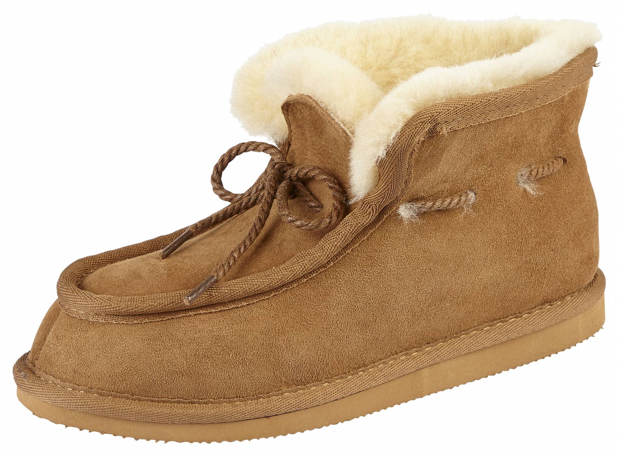 At first, it is normal for sheepskin lined slippers and boots to feel a little tight. The sheepskin will bed down and mould to the shape of your foot and feel completely normal with a short amount of wear, so this is nothing to worry about. We recommend ordering your normal shoe size. If you are a half size, then we recommend buying a size up.